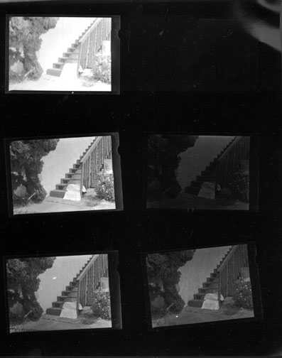Here's the test Proper Proof made after developing six Efke PL-100 negatives in 510 Pyro 1:200 for 10, 20, 30, 40, 50, 60 minutes with 1 minute agitation at the beginning and 10-seconds every 10 minutes. Exposed under the enlarger for the minimum time to print through the clear film edge.